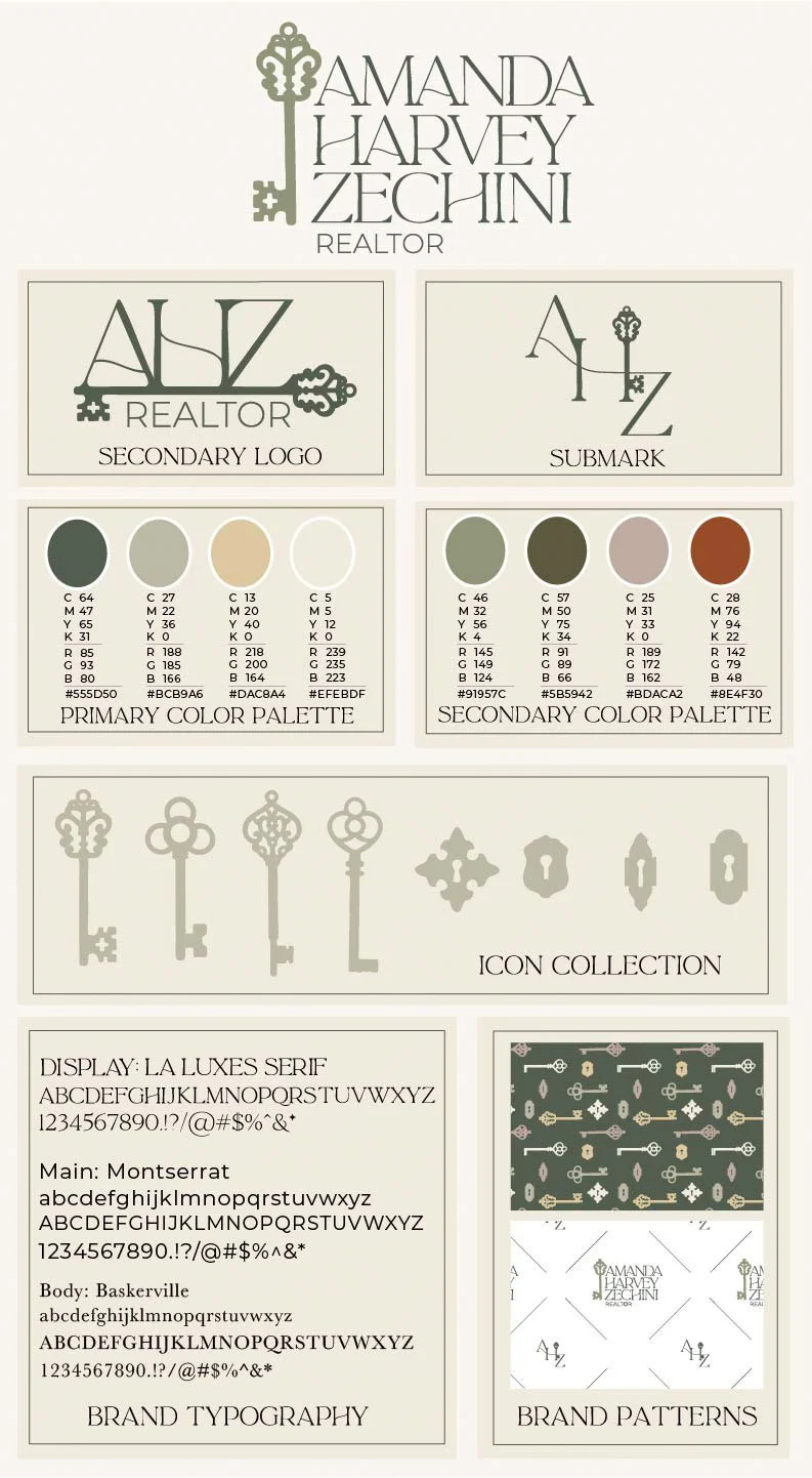 Amanda came to us with a clear vision for her real estate business but needed a cohesive brand identity that would showcase her unique expertise and deep community connections. With nearly three decades of experience spanning mortgage lending, title and escrow, and real estate sales, Amanda needed a brand that would communicate her comprehensive industry knowledge and personal approach to guiding clients through their real estate journey. We developed a full branding package that authentically captures her warmth, professionalism, and local expertise. Our work included creating a sophisticated color palette and logo design, developing a user-friendly website, helped to craft her mission statement "Connecting people with the places they'll love to call home, one successful transaction at a time," producing professional brand photography, and writing compelling website copywriting that highlights her unique value as a realtor. The resulting brand design positions Amanda as a trusted advisor with the experience to navigate the entire home buying and selling process, from financial considerations to legal complexities. Her new brand identity resonates with clients at every stage of homeownership, from first-time buyers to those building custom homes or downsizing for retirement.