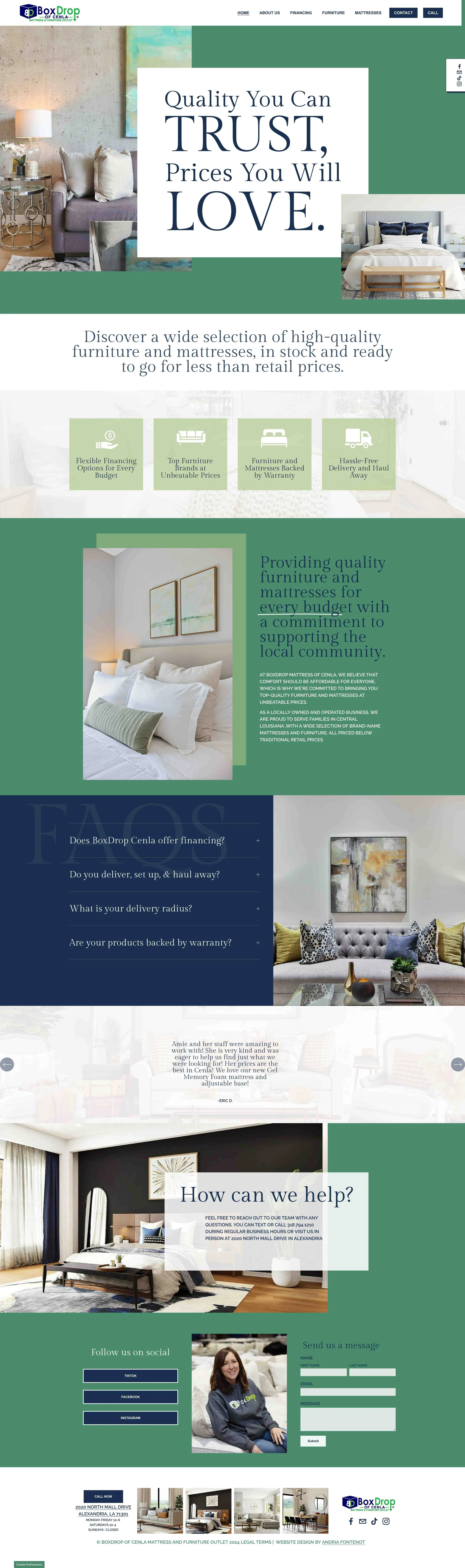 BoxDrop of Cenla came to us in need of a full design package. The did not have a website and their existing branding and online presence didn’t reflect the quality of their products or the heart behind their business. As a budget-friendly furniture and mattress outlet that deeply values comfort, affordability, and community, they needed a brand identity and website that clearly communicated those strengths while staying approachable and trustworthy.